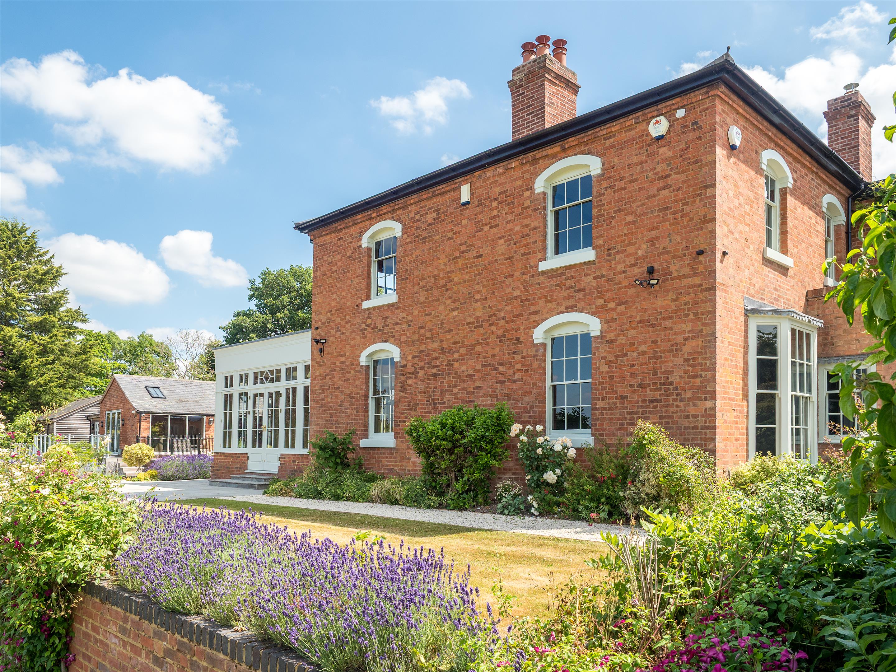The gardens and grounds are stunning. The property is approached via a quiet lane which leads to a block-paved driveway at the front. Steps and a pathway lead to the front entrance, flanked on either side by lawn. The rear courtyard is gated and also block paved, with a second gate leading to the garaging and additional parking for several cars. A further outbuilding provides useful storage.