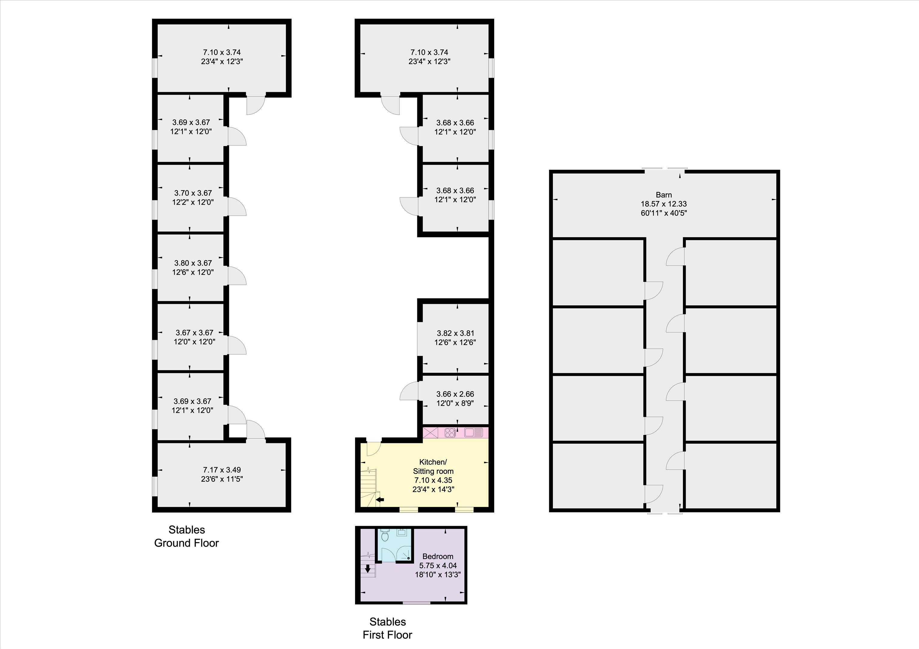 This spacious barn houses eight stables, and benefits from a single turn-out pen to the rear which provides fantastic all-weather turnout. Electricity and water are connected.