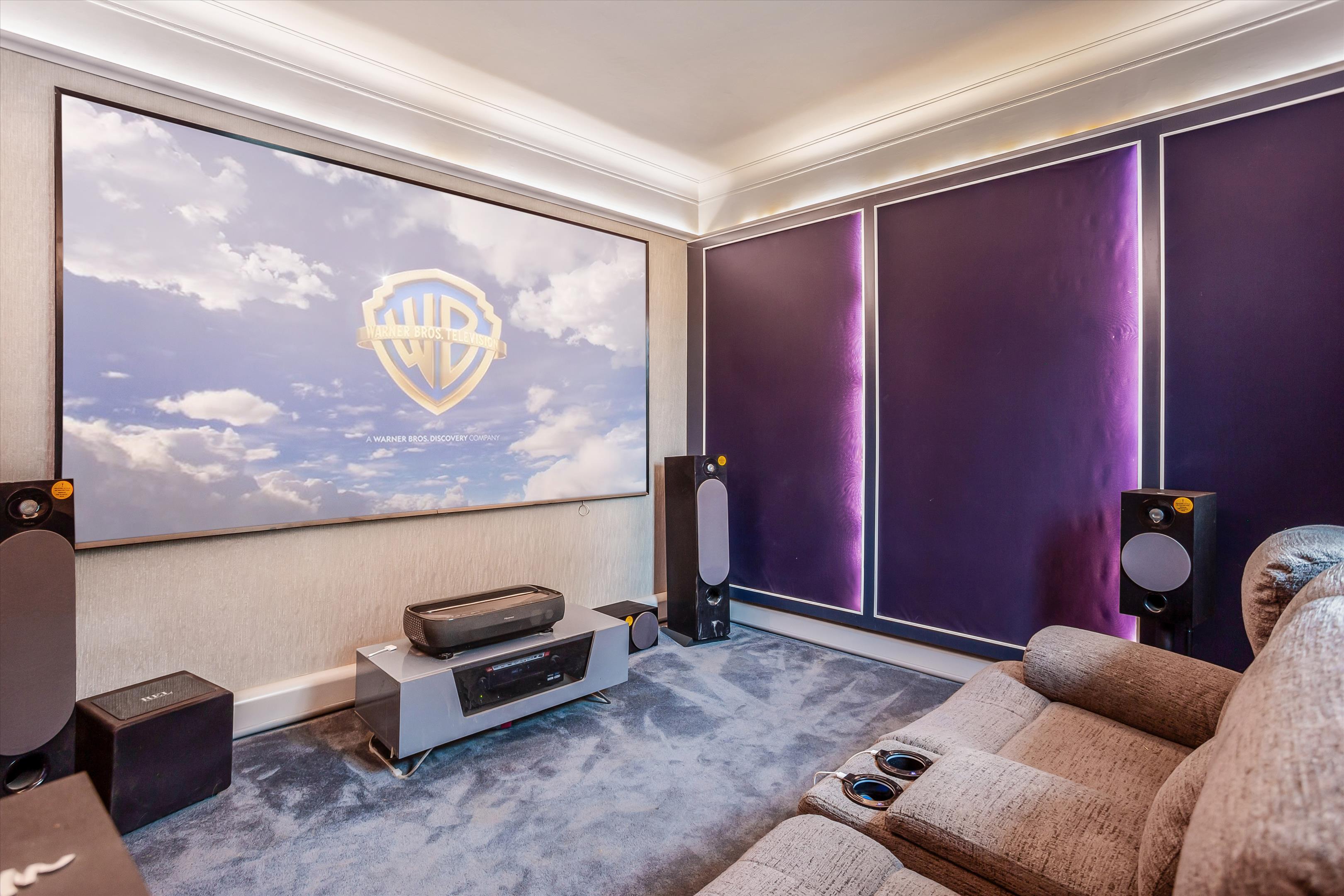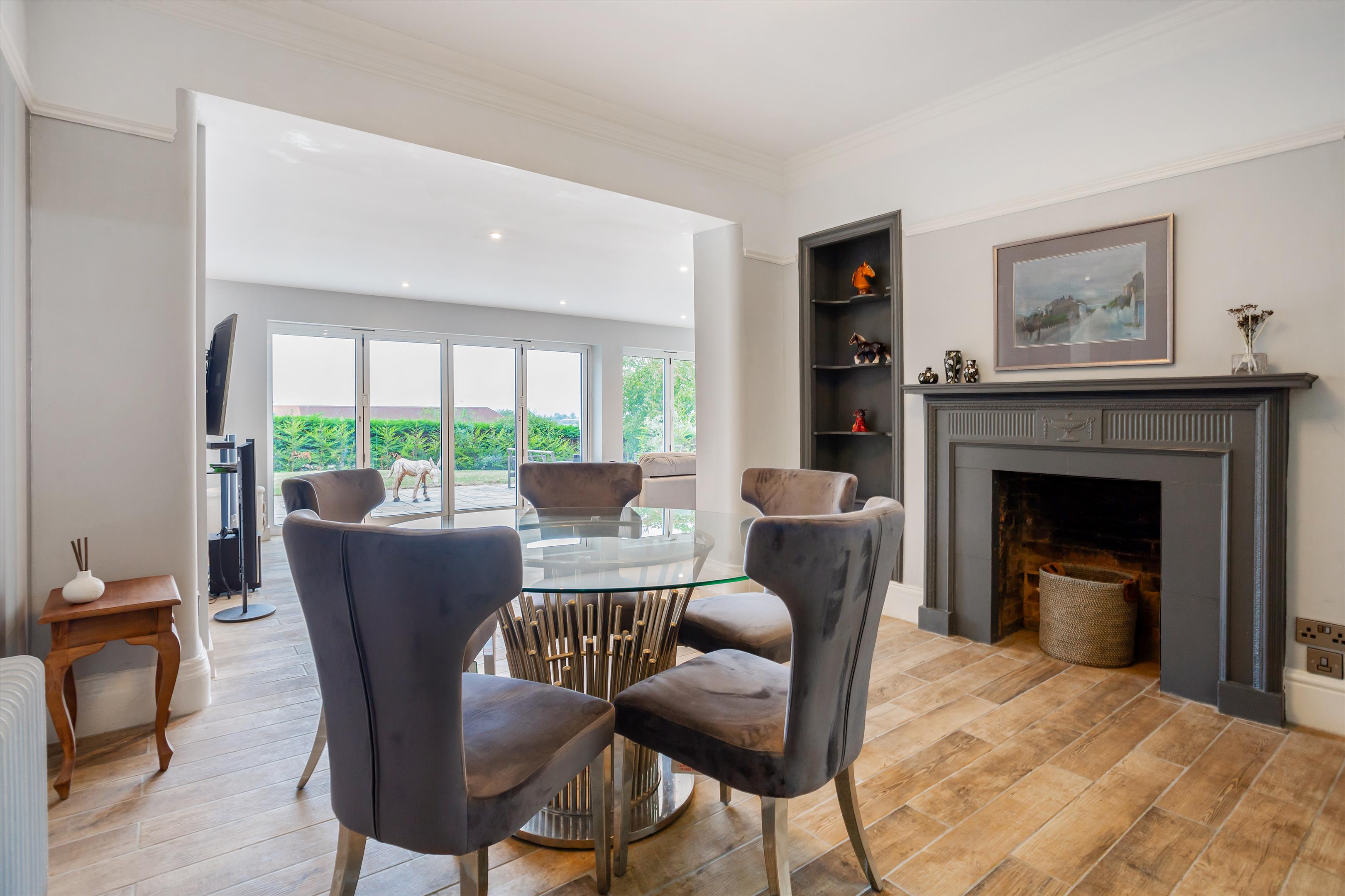 The front door opens to an elegant entrance hall with a beautiful staircase rising to the first floor. A door opens to a cosy snug, complete with feature fireplace, which flows into a bright and airy garden room with bifold doors providing access to the patio area and lawned garden beyond. The garden room continues into the spacious sitting room, complete with two external doors providing access to the beautiful grounds, a large bay window and feature fireplace with ornate detailing. Double doors open to the entrance hall, which further provides access to a living room, currently used as a cinema room, a study with fitted units, and a magnificent kitchen/dining room, complete with a walk-in larder and an extensive range of wall mounted and base units sat beneath a granite worktop with a range of integrated appliances, including three ovens, a wine fridge and plate warmer. A utility room leading from the kitchen and a WC completes the ground floor.