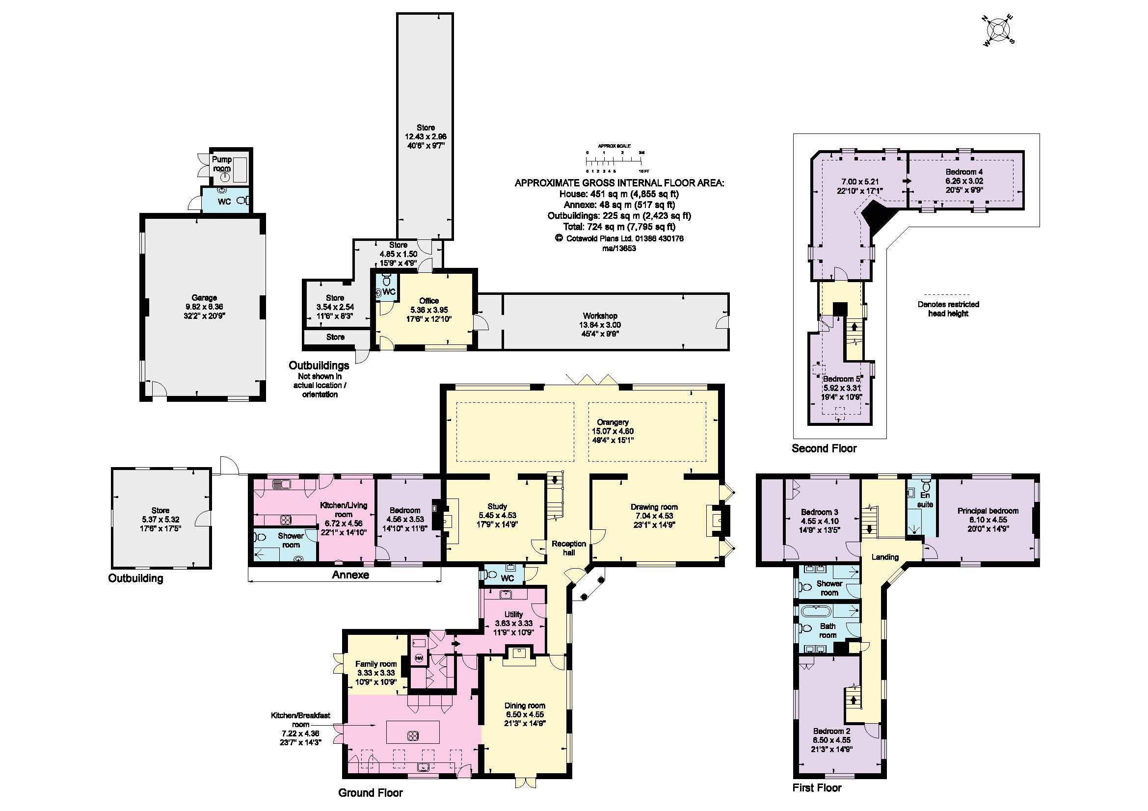 There is an extensive range of outbuildings including a double garage with an outside W.C. and store room (the plant room for the former swimming pool) and a long L-shaped building utilised as a workshop, store and office.