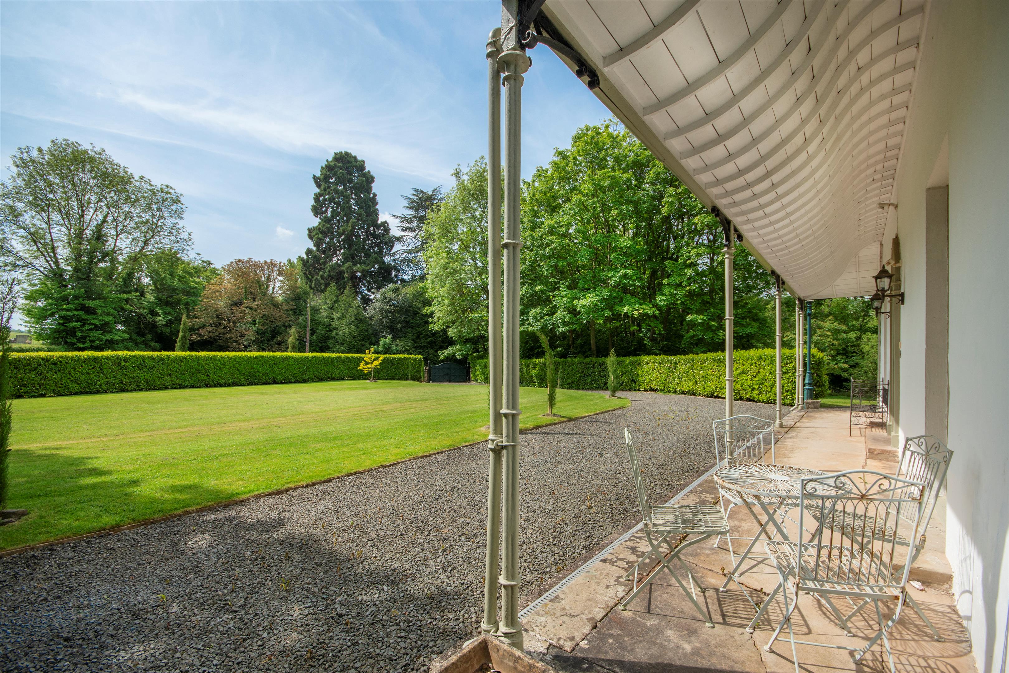The current owner has created a beautiful courtyard garden in the first courtyard immediately at the rear of the main house. There are raised beds and climbing roses offering an abundance of colour. There is an enclosed kitchen garden on one side of the house and a pretty formal garden to the front with a wide lawn and mature trees and hedges offering a high degree of privacy as well as views to the hills. Off the kitchen is a part enclosed and covered sitting area that would be a lovely area for a garden room running immediately out off the kitchen (subject to the necessary consents) with a pretty outlook to the pond and over the grounds. There is an above ground swimming pool and lawned area running up to the pond that then leads to the paddocks adjoining the house.