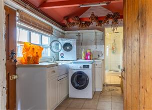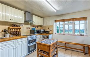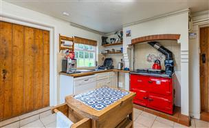 The house can currently be approached on foot either from the public highway via a traditional wrought iron gate with a pathway leading to the front door or via a garden path to the south of the property providing access into the utility room through to the kitchen. The kitchen is fitted with a range of units and features a gas-fired Aga. Adjoining the utility room is also a bathroom with shower.