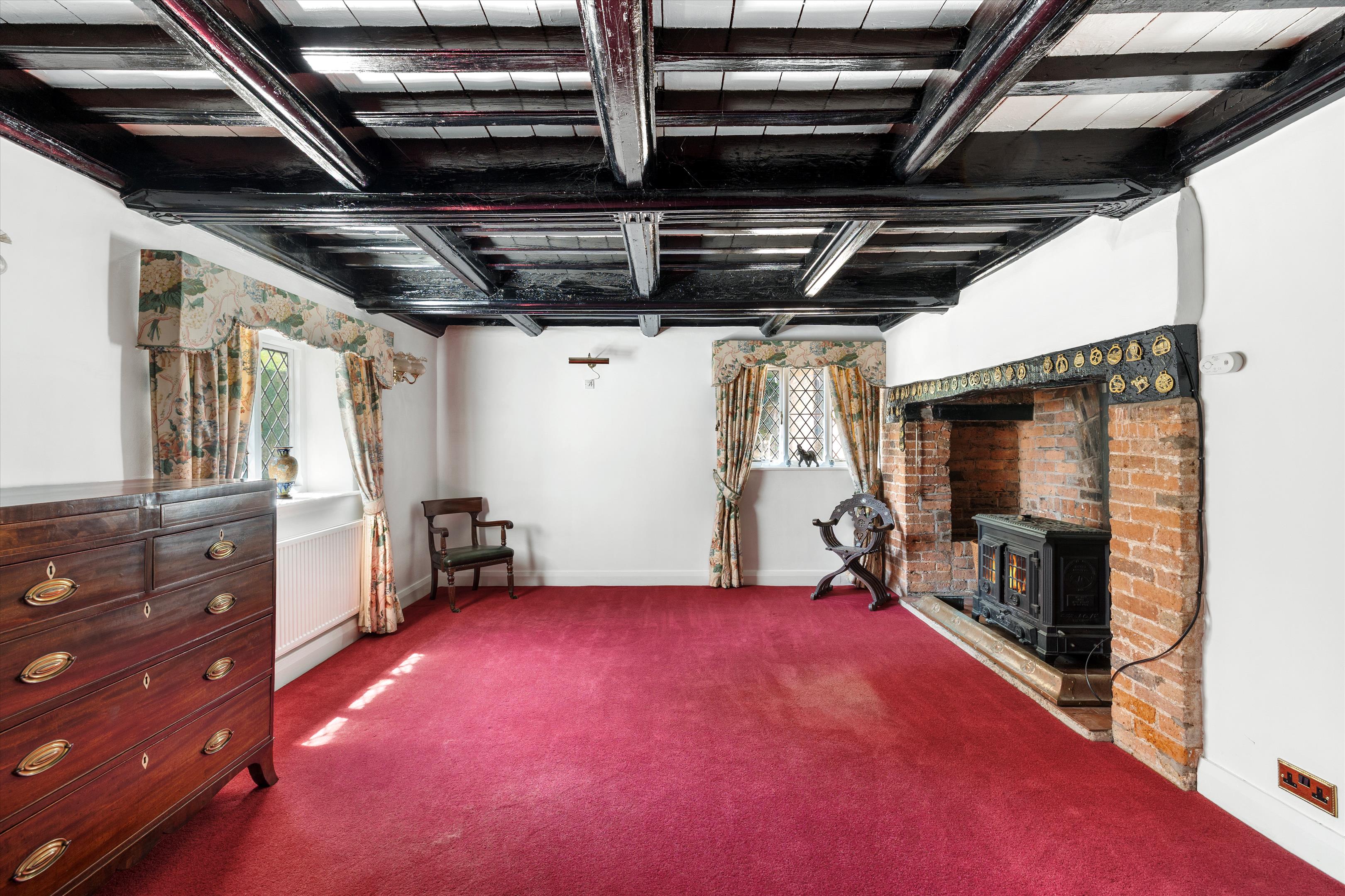 - The interior has many well-preserved period features including mullioned windows with leaded lights, seventeenth century oak panelling, cross beamed ceilings, and a Tudor-arched stone fireplace with a carved wood Jacobean overmantel.
