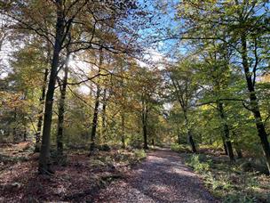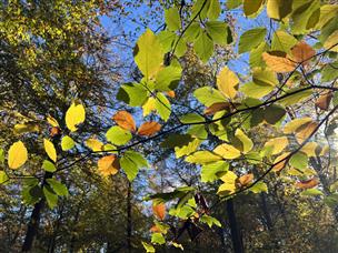 The wood is attractive in all seasons, but it is particularly stunning when the fresh green beech leaves break in the spring, and when the gold and russet tints of autumn infuse the wood with a warmth that takes your breath away, especially when viewed against a blue sky.